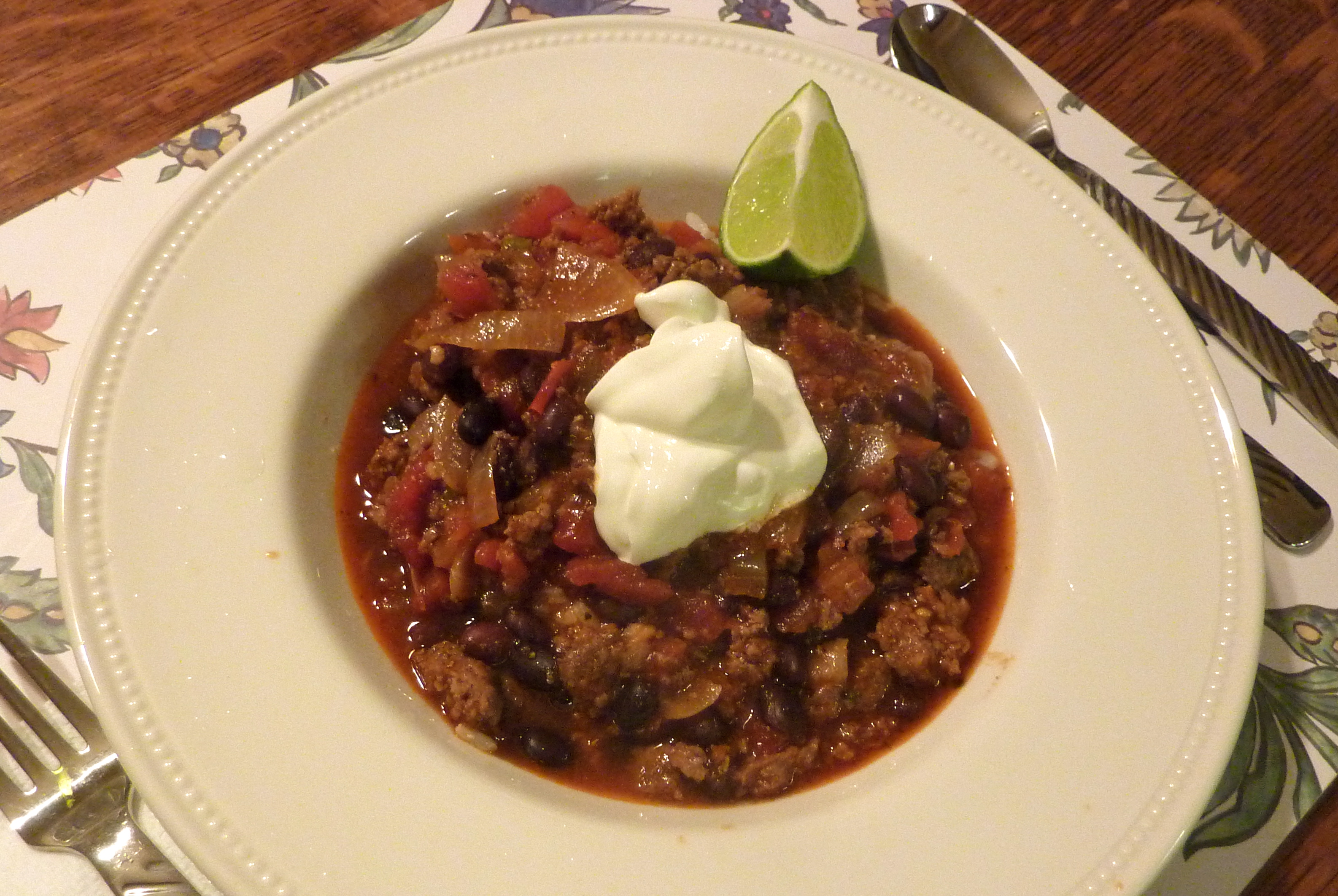 So today’s chili recipe is in honor of Debbie. She inspired me to post it by leaving me with yet another fond memory of our many evenings of shared food and friends – just as she has inspired me in so many other ways.