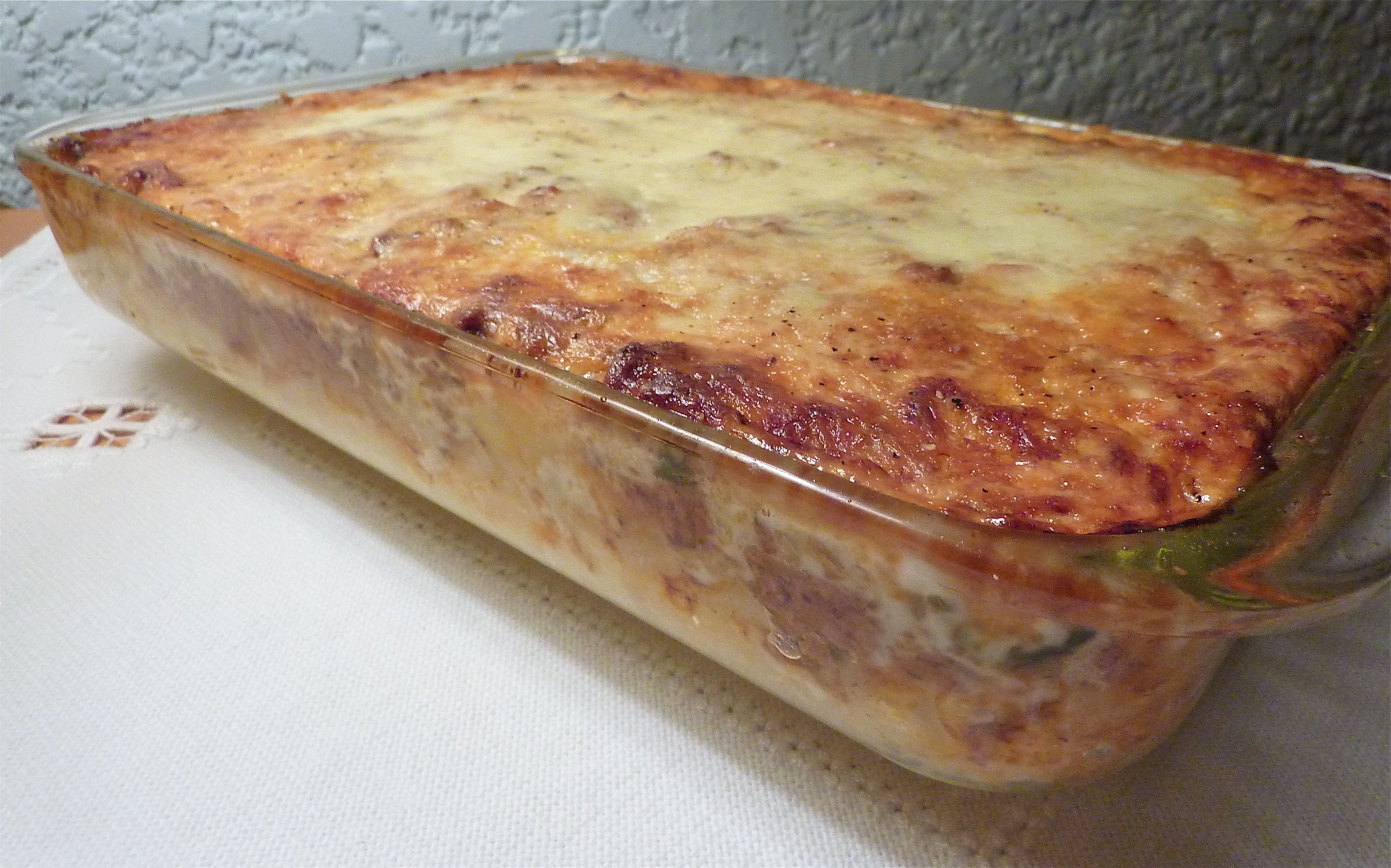 Pasta and Bechamel with Meat Sauce Layered on Top