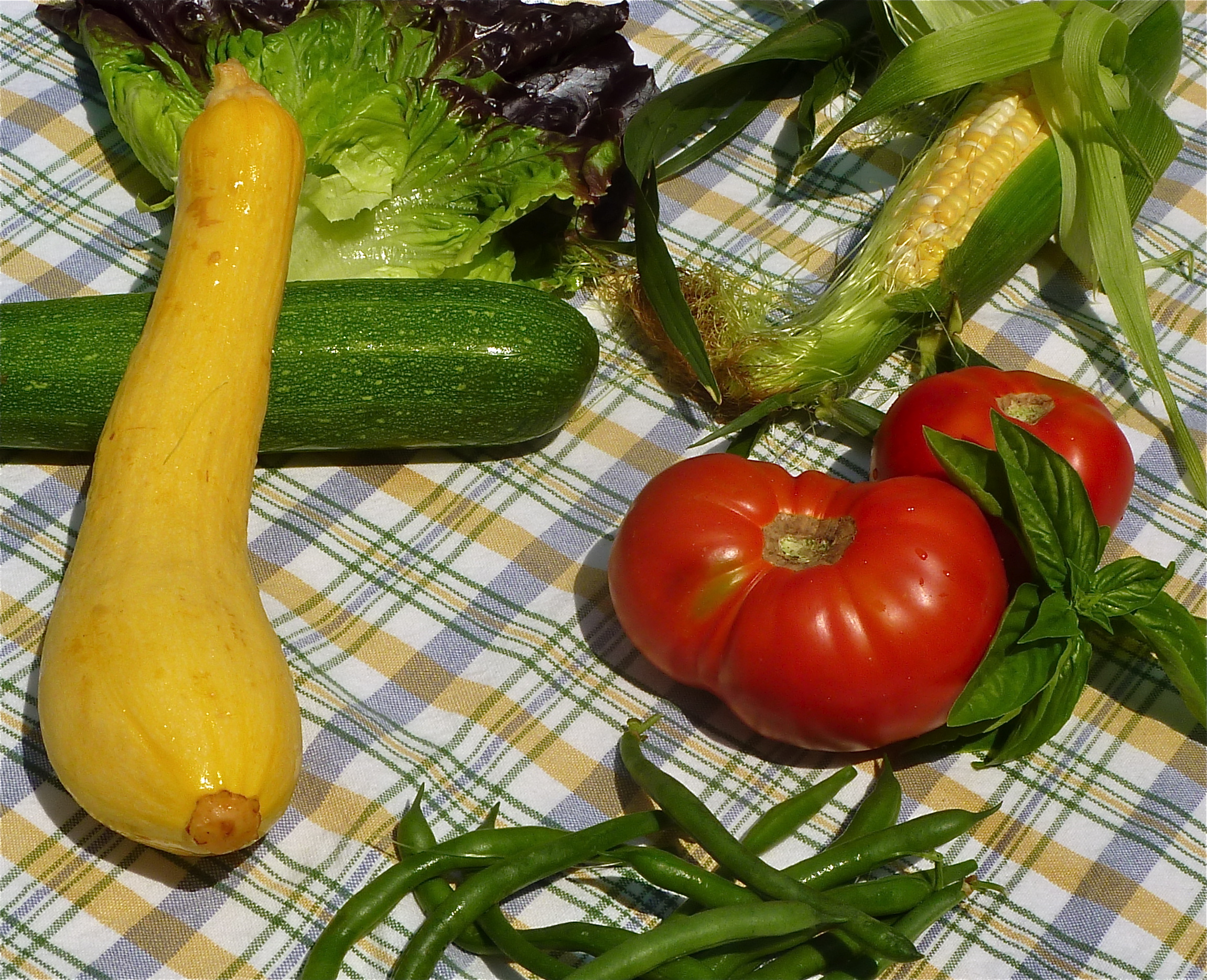Michigan Harvest – Zucchini, Summer Squash, Green Beans, Tomatoes, Basil, Early Corn and Red-Leaf Lettuce