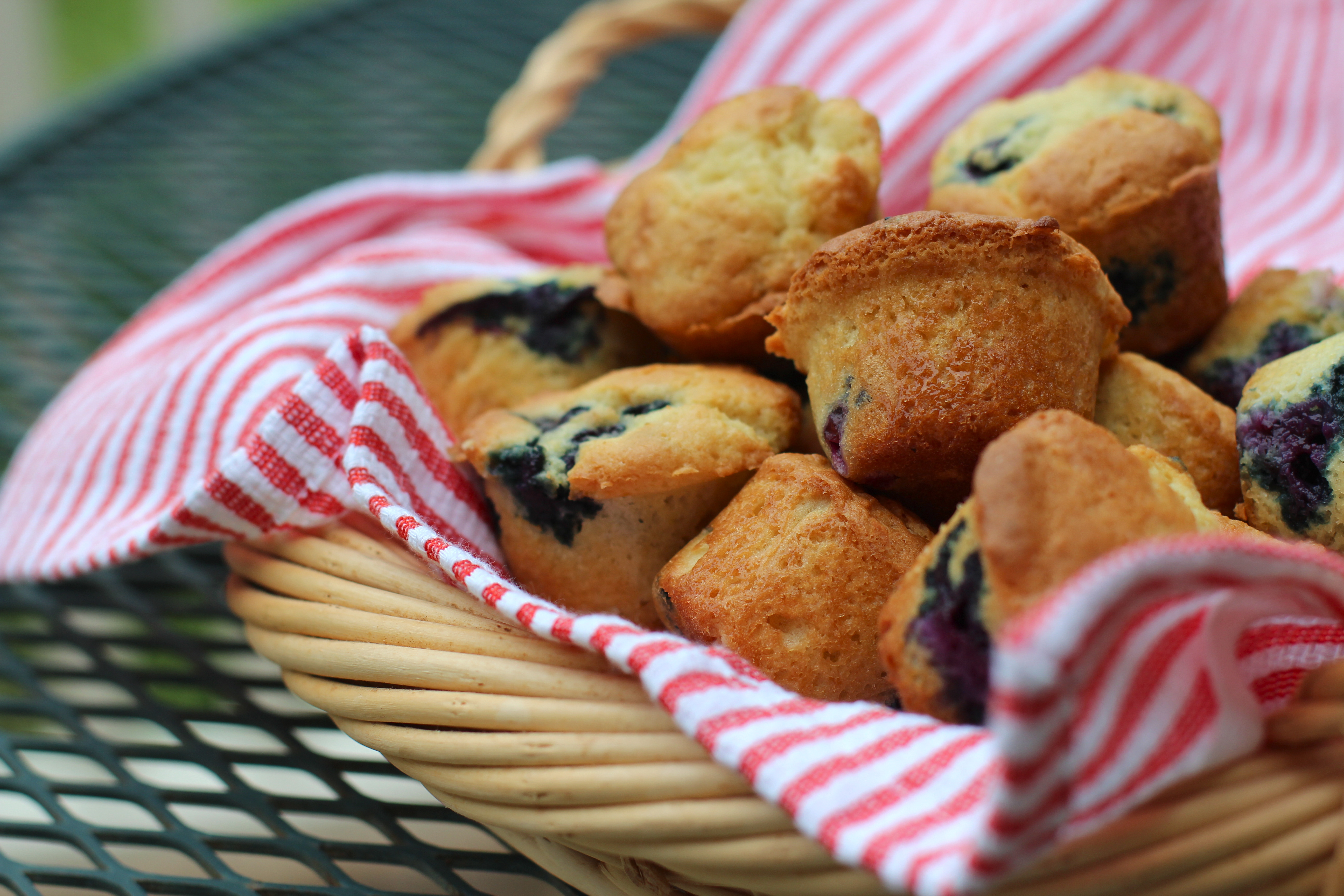 Blueberry Loaf – This recipe makes about two large sized loaves.  Follow instructions through step 4, but spoon into a large loaf pan and bake about 10 minutes longer than mini-muffins.