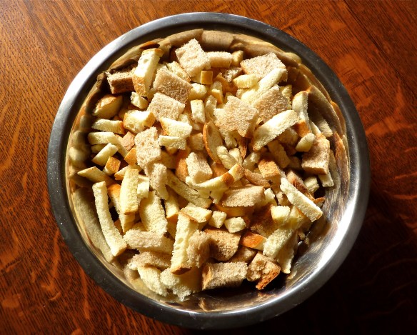 11 ounces bread cubes, unseasoned, or about 9 cups, white or whole wheat suitable