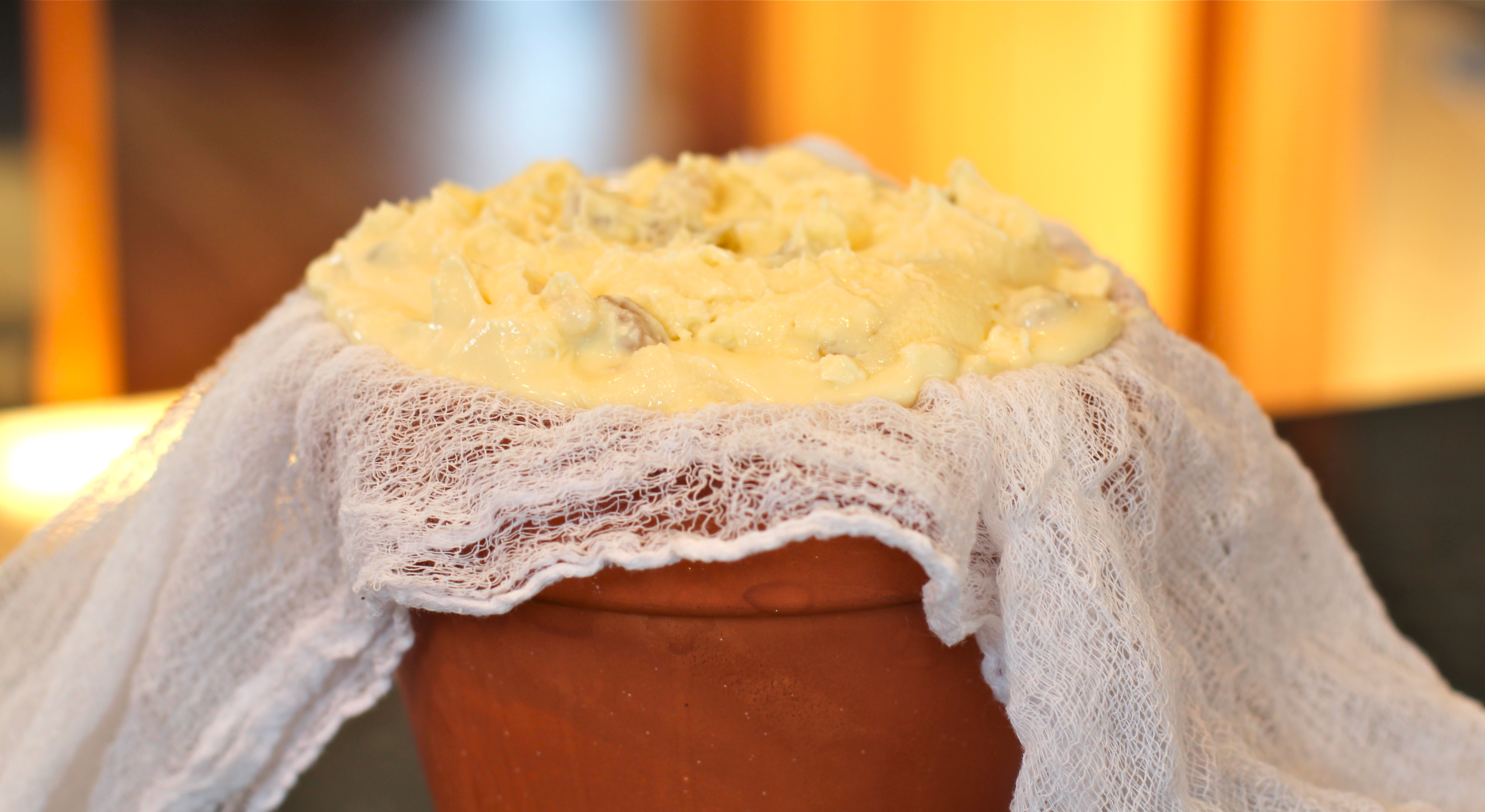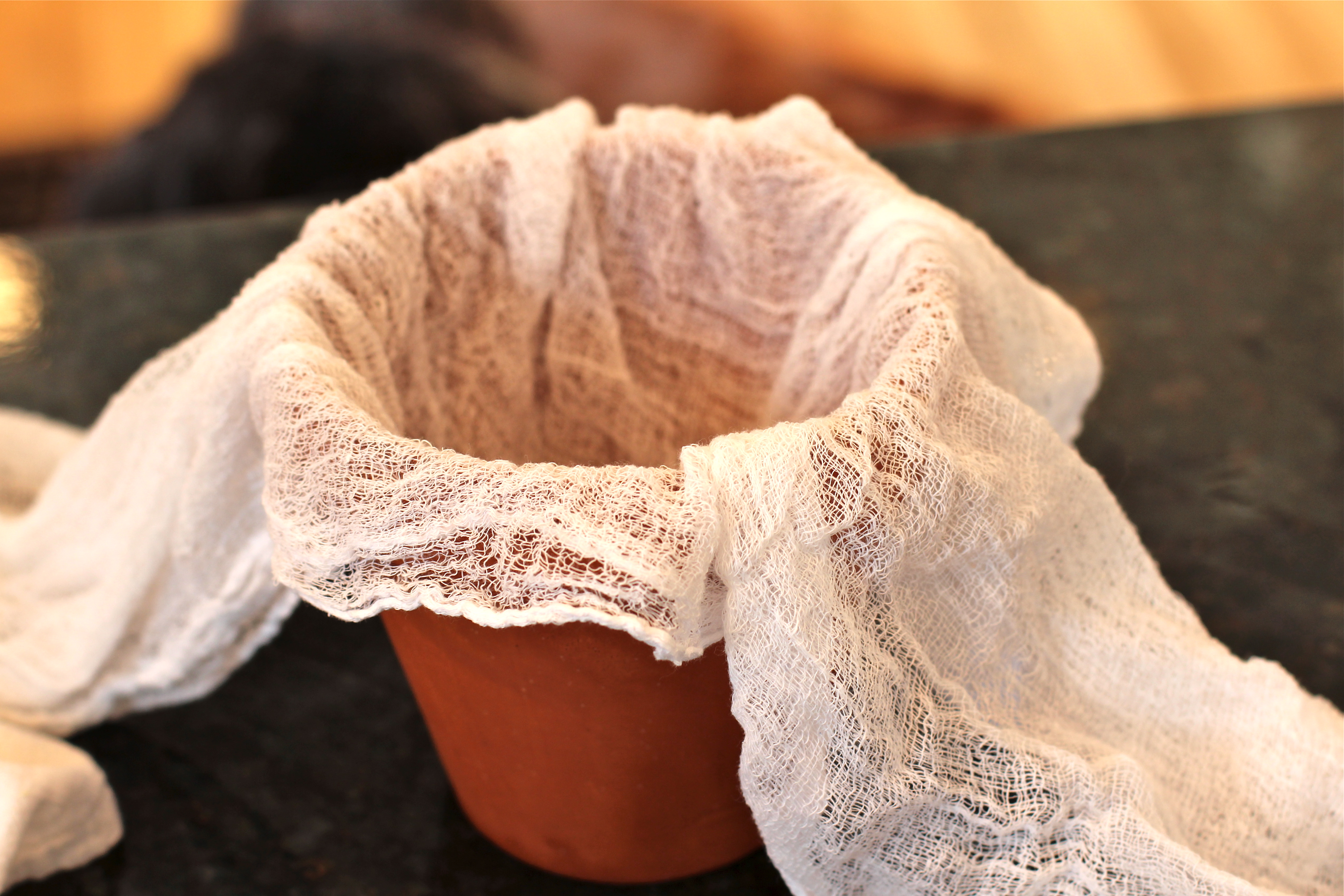 1. You will need a clean, 5-inch terra-cotta flower pot and cheesecloth for this recipe.  It will take about 4 days, start to finish, but very little of that time is work time.