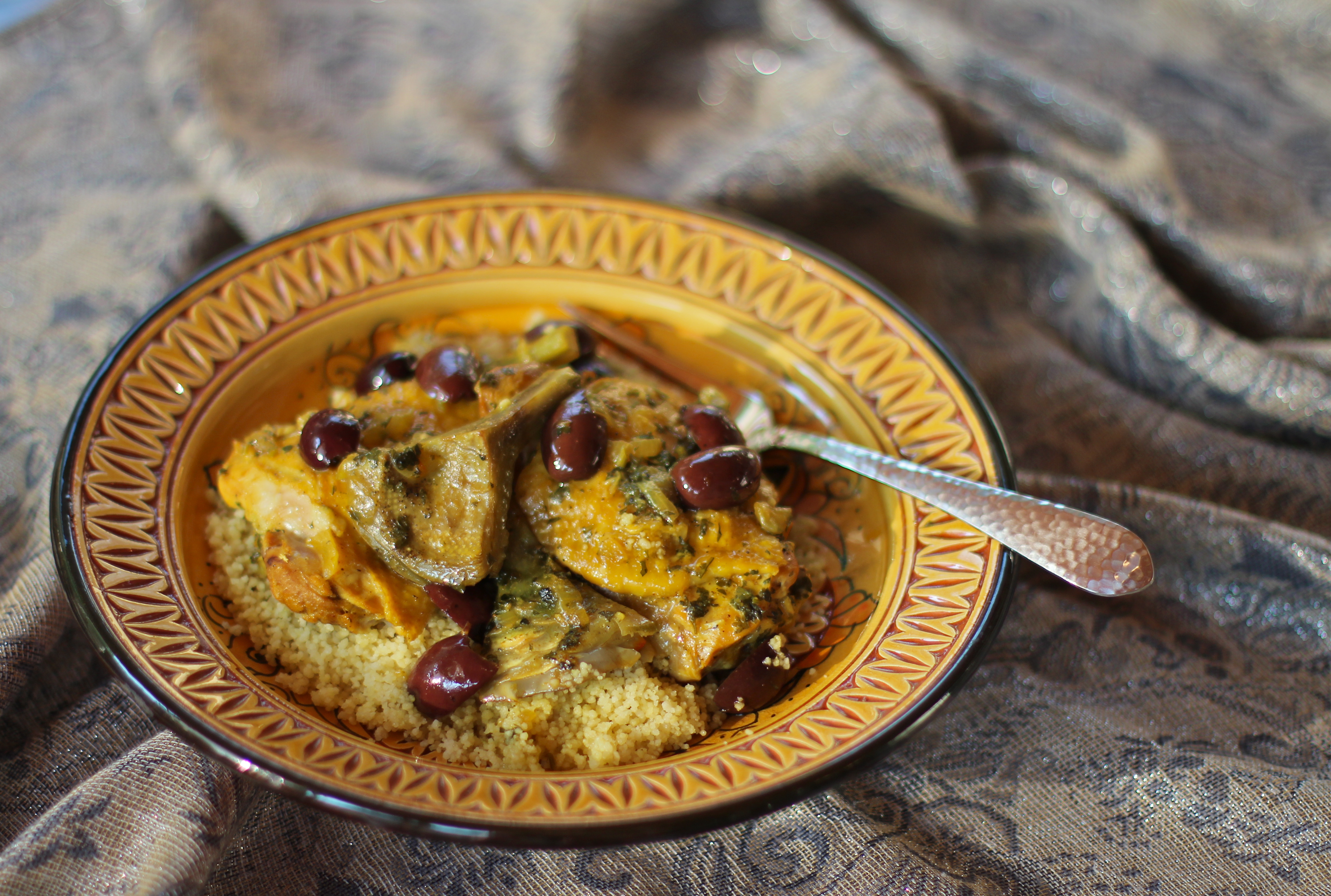 Moroccan Chicken with Preserved Lemons, Olives and Artichokes