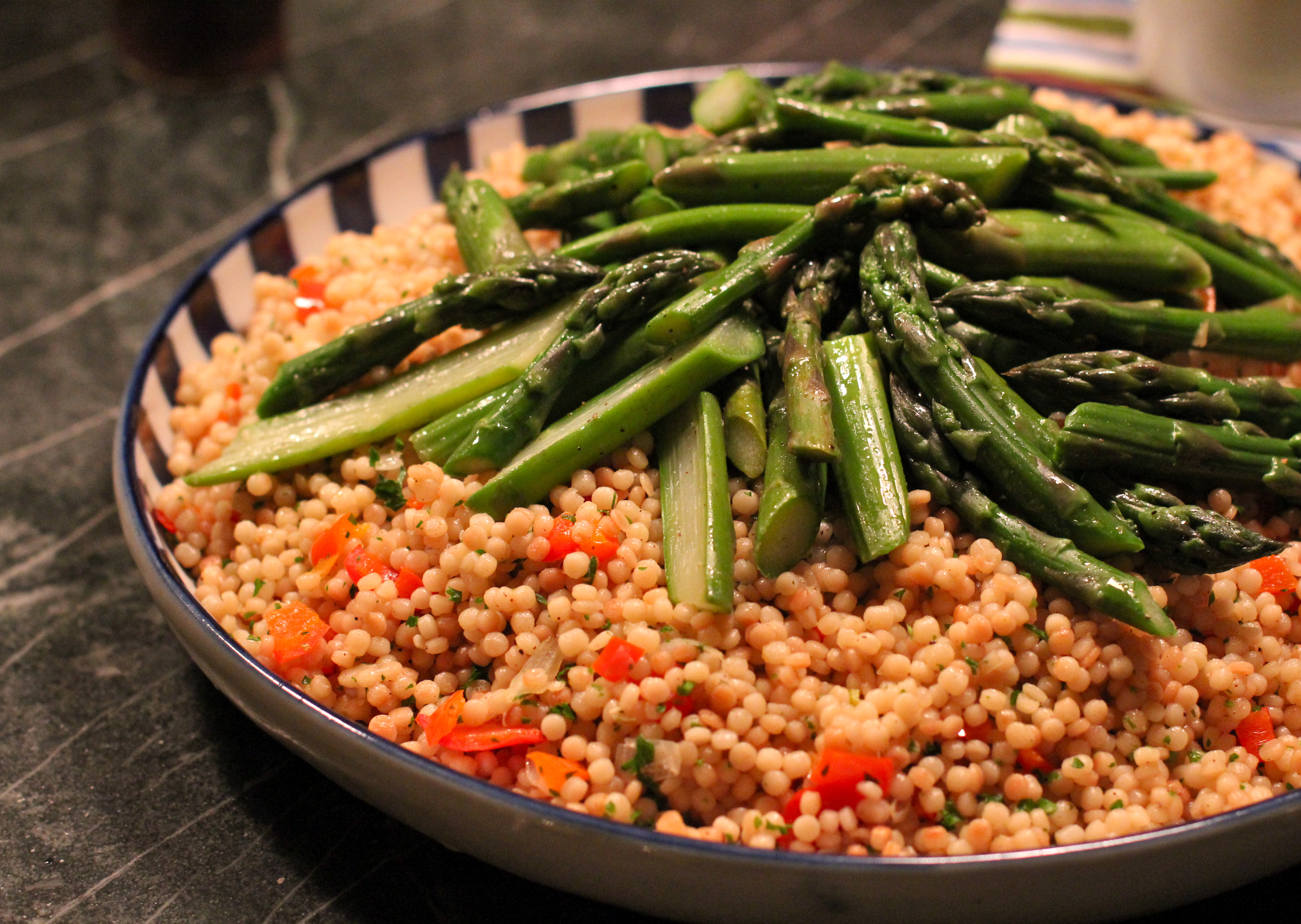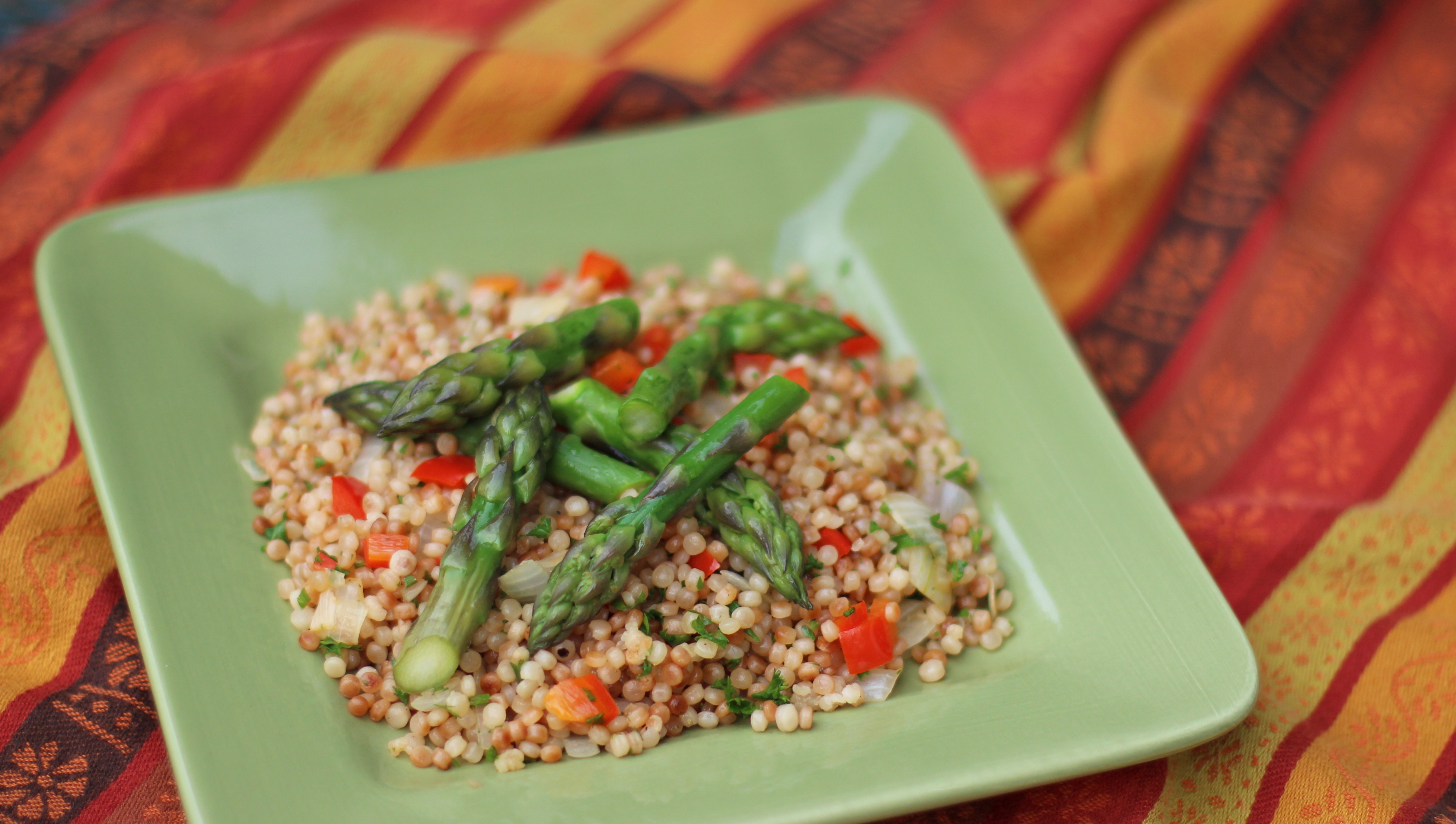 Israeli Couscous with Sweet Red Peppers and Asparagus
