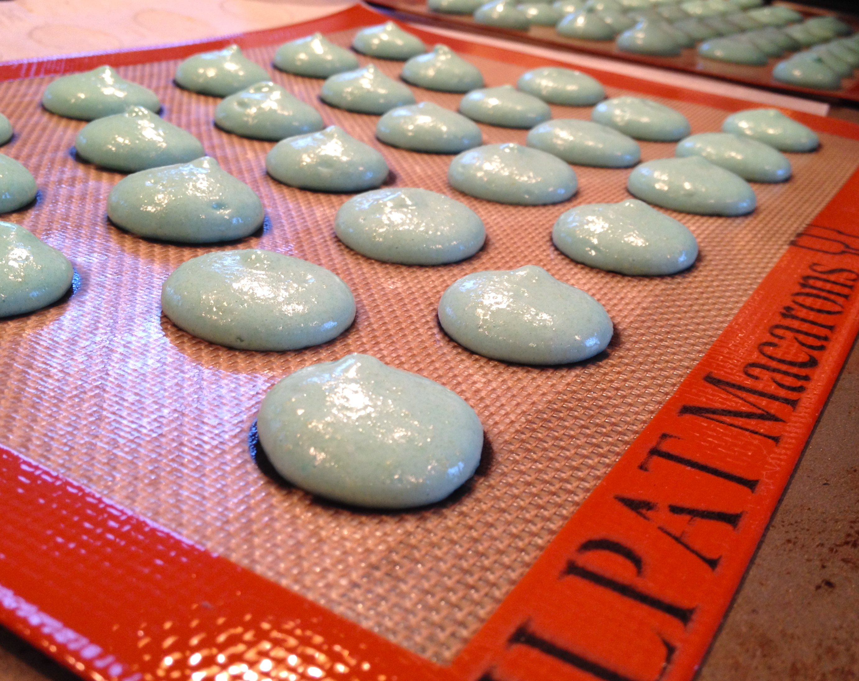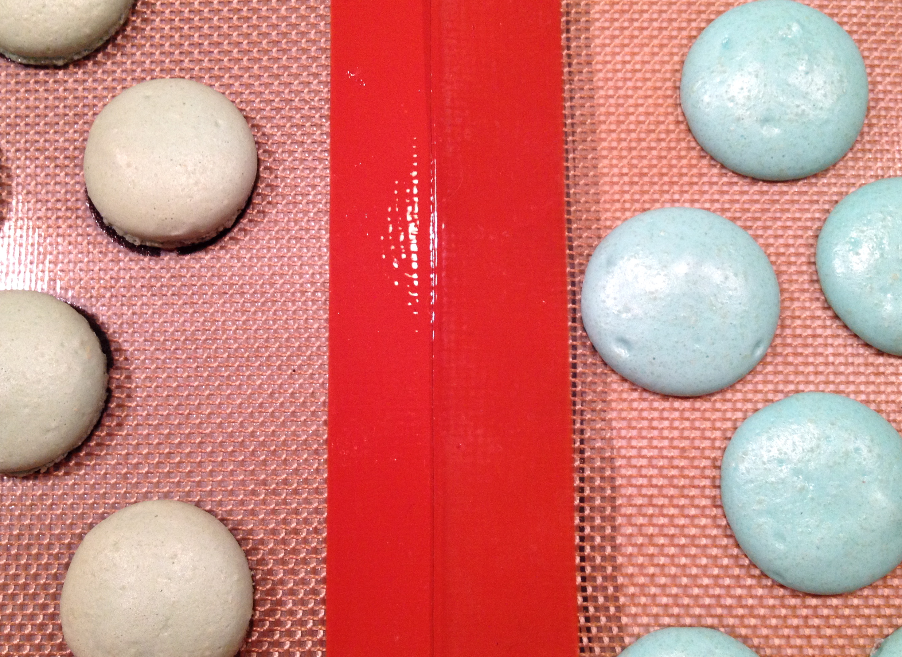 1. Prepare two sheet pans with a Silpat, ideally a “macaroon” Silpat. If you do not have a Silpat, use parchment paper.