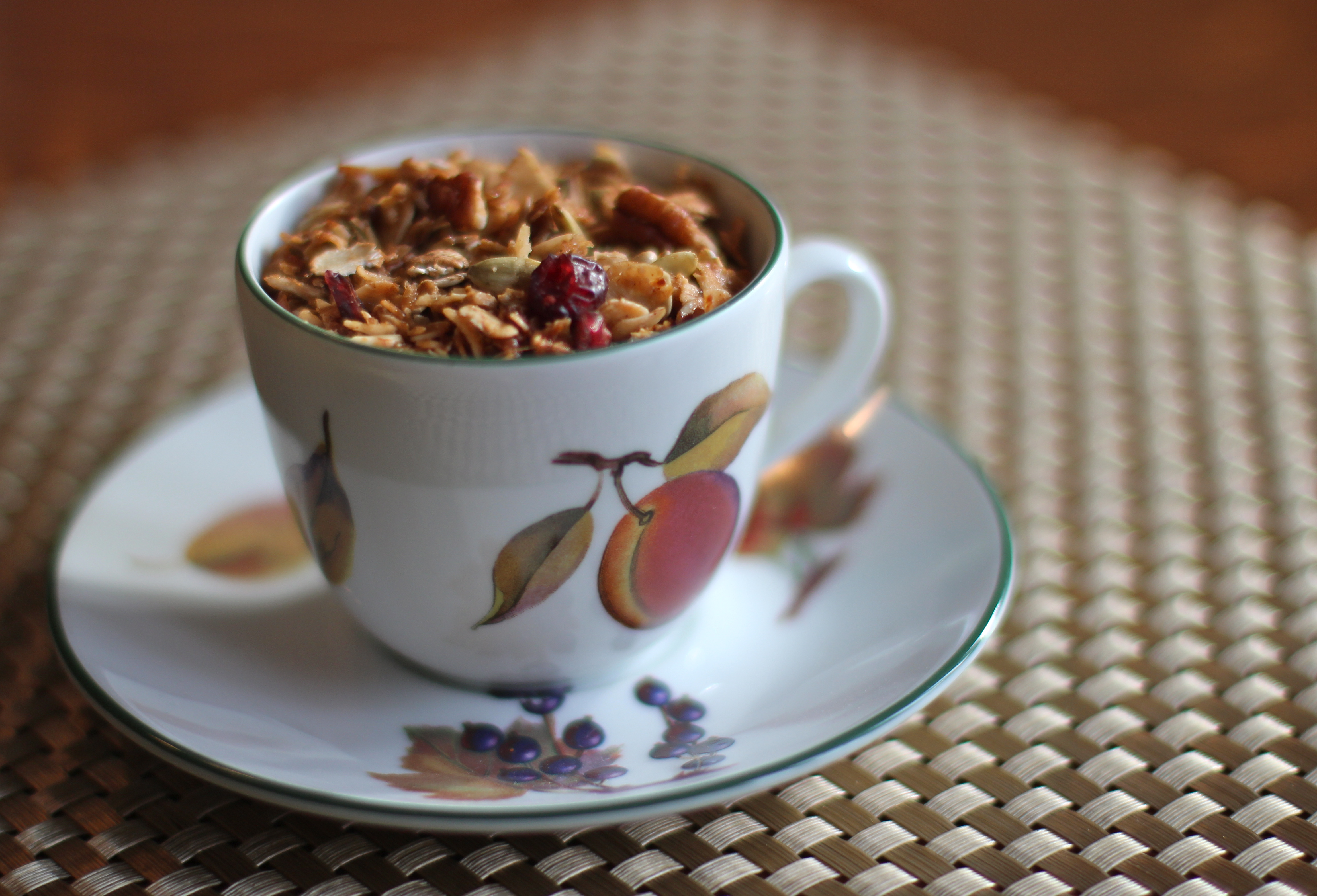 Granola – Appropriately displayed in Royal Worcester Porcelain, hand-crafted in Worcestershire, not far from the Malvern Hills.